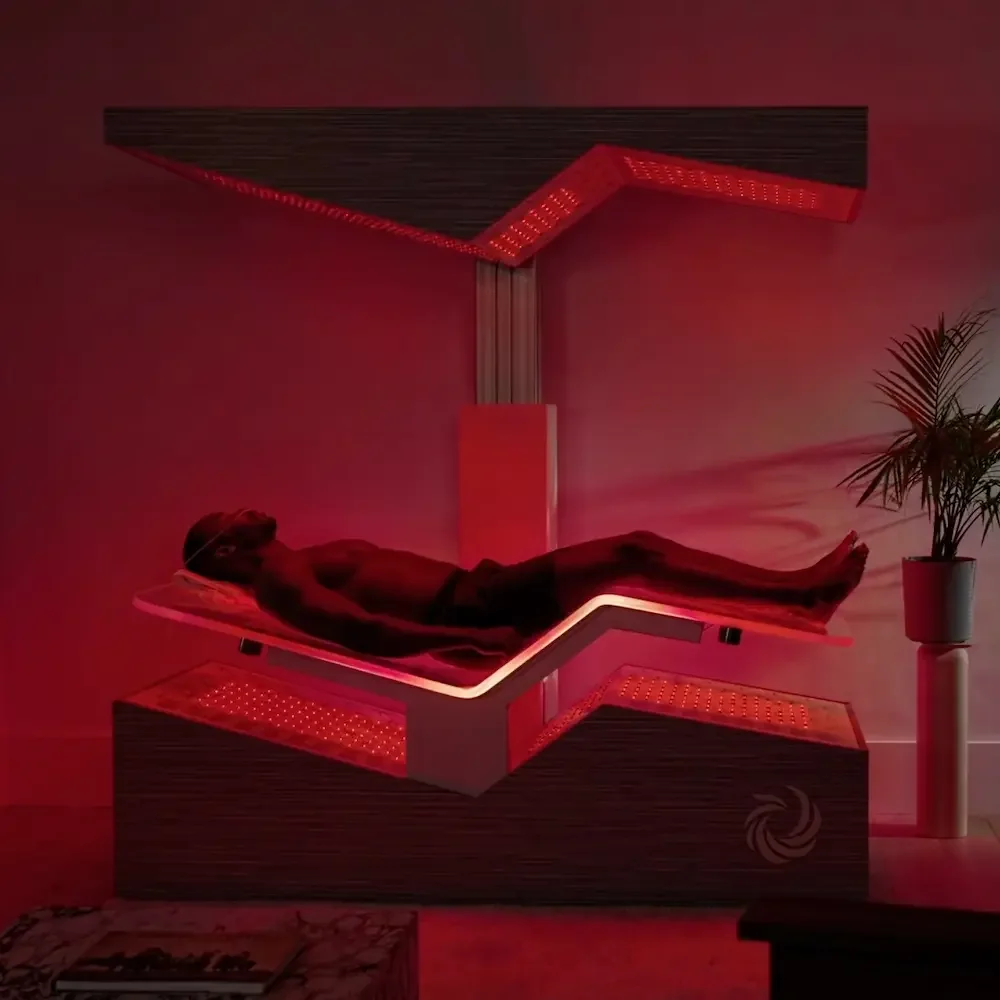 Unlike standalone red light therapy or PEMF devices, the Ammortal Chamber delivers pulsed electromagnetic fields, multi-wavelength red and infrared light, molecular hydrogen, vibroacoustic sound therapy, and guided breathwork simultaneously. Each modality amplifies the others while you rest in a NASA-inspired zero-gravity position.